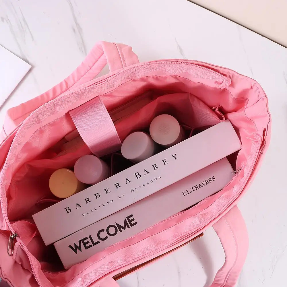 Bolsa tote feminina de grande capacidade, confeccionada em poliéster leve e resistente, perfeita para o dia a dia. Conta com múltiplos bolsos internos e externos, oferecendo praticidade e organização para mães, viagens, compras ou rotina agitada. Design versátil que pode ser usado como bolsa de ombro, tiracolo ou mão, combinando estilo moderno e funcionalidade.